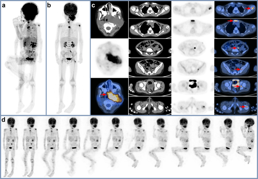 PET-CT在肿瘤分期、复发和治疗反应评估中发挥着重要作用。与其他传统的影像学手段相比,PET-CT显示出更好的敏感性和特异性。凭借接诊数千例儿童肿瘤患者的丰富临床经验,基于世界首台Total-Body PET-CT uEXPLORER的超高灵敏度性能,这一次,在彬彬不自主变换从仰卧到右侧卧的情况下,中山大学肿瘤防治中心樊卫主任团队仅截取仰卧段的数据进行图像重建,依然拿到了清晰的PET肿瘤诊断影像,创新突破解决了儿童肿瘤患在扫描中不自主运动的问题,同时避免了重复扫描。“目前,针对儿童肿瘤领域,我们已经在国际核医学顶级期刊中发表了多篇科研论文,希望我们的努力可以为创新儿童肿瘤诊疗方法、救治更多肿瘤患儿做出贡献。”中山大学肿瘤防治中心核医学科主任樊卫说道。