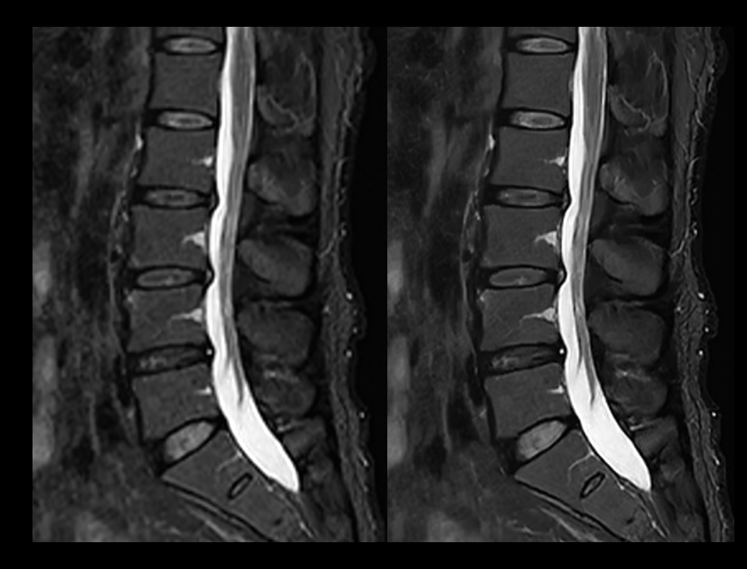 常规成像 (2:56 min) vs. uAIFI DeepRecon™ (2:56 min)